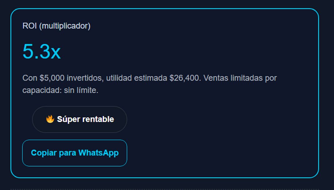 Si el simulador muestra un ROI de 3x significa que por cada peso invertido podrías generar tres pesos de ganancia.