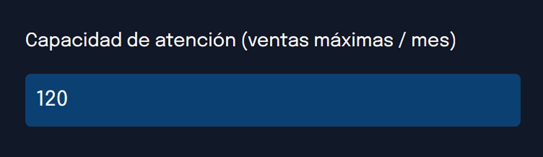 Por eso el simulador incluye un campo de capacidad mensual, que limita las ventas estimadas según tu capacidad real de atención.