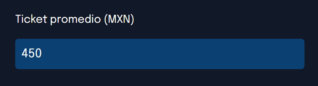 Si normalmente vendes servicios o productos de $2,000 pesos, el sistema multiplica ese valor por la cantidad estimada de ventas.